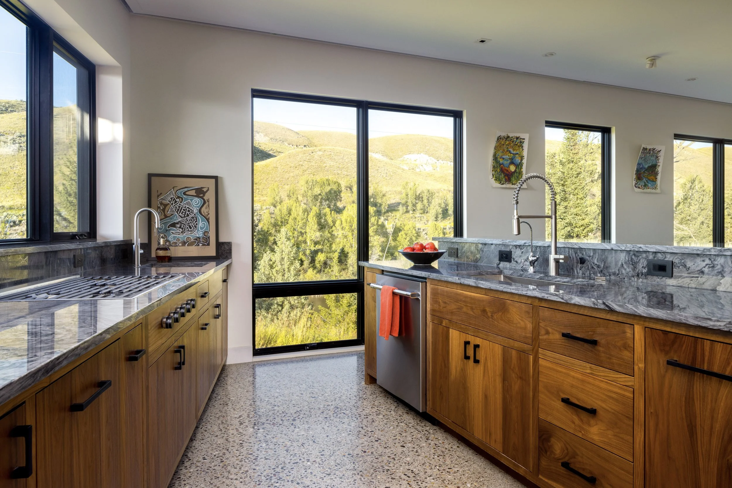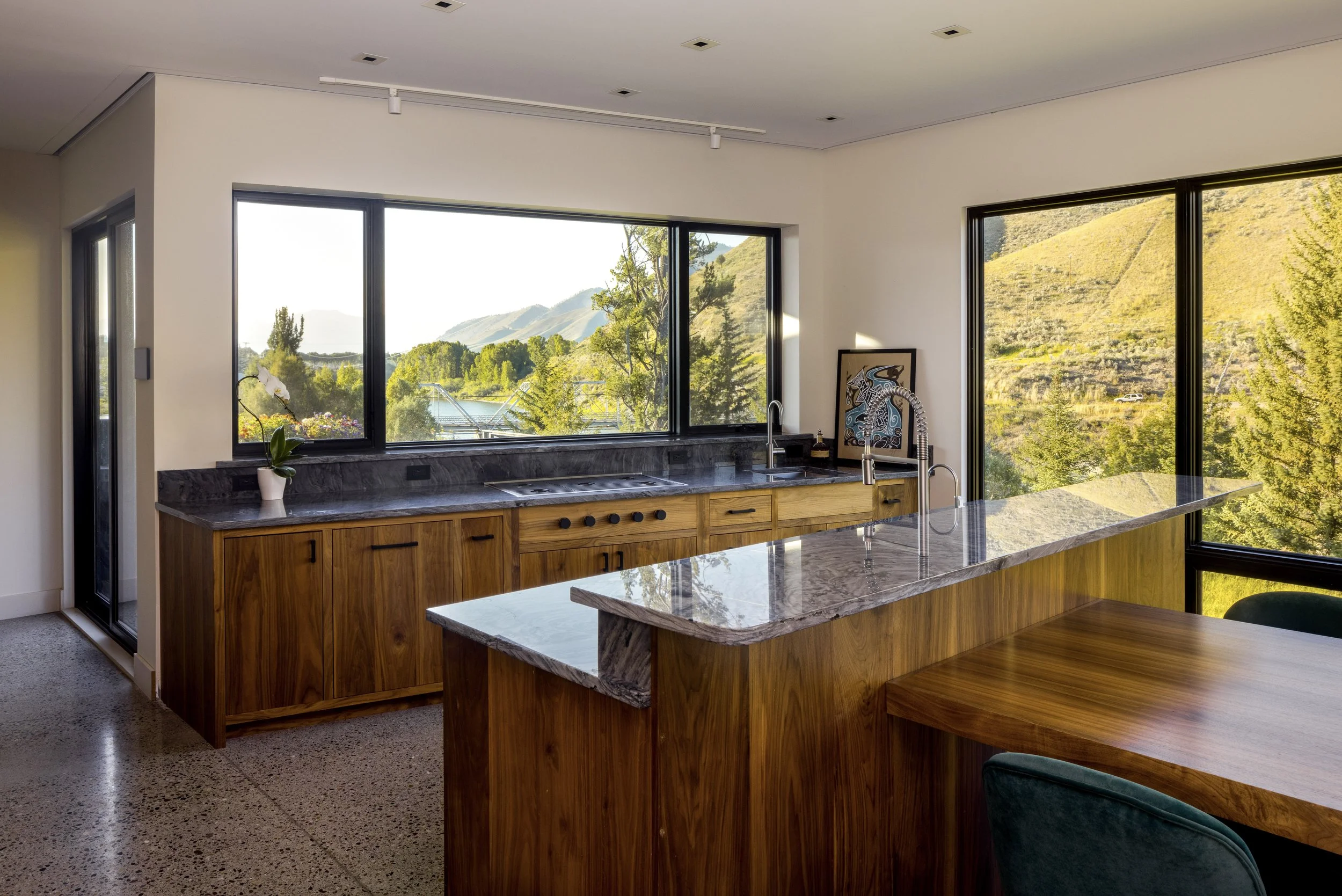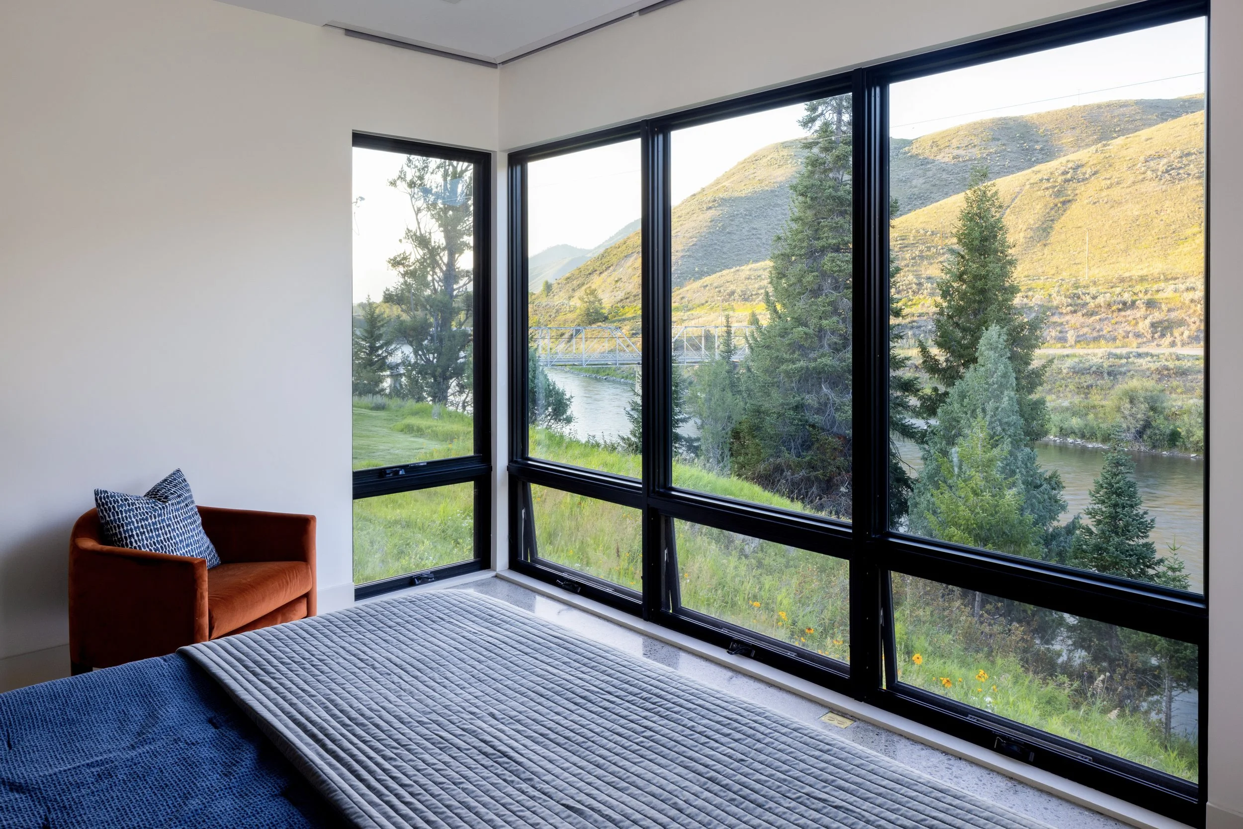 Located at the southern end of the Jackson Hole valley, this house draws design inspiration from the banks of the scenic Snake River which it overlooks. Just as the river has eroded the hillside as it passes, the house's lower levels recede back allowing the upper levels to cantilever out towards the river. Large spans of glazing are strategically placed to reveal beautiful vignettes of the waterfront below and the changing colors of the hillsides beyond, all while ensuring that the connection to the outdoors is ever-present.